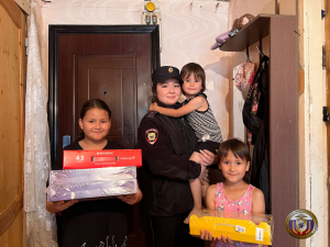 В Якутске полицейские поздравили ребят с предстоящим учебным годом и вручили им подарки